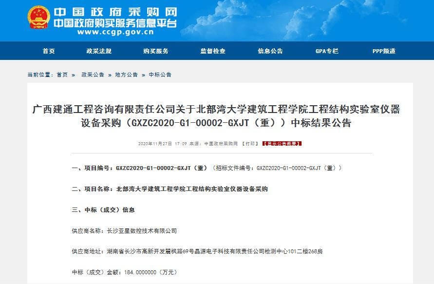- 2020-11-28 北部灣大學建筑工程學院工程結構實驗室儀器設備采購中標
