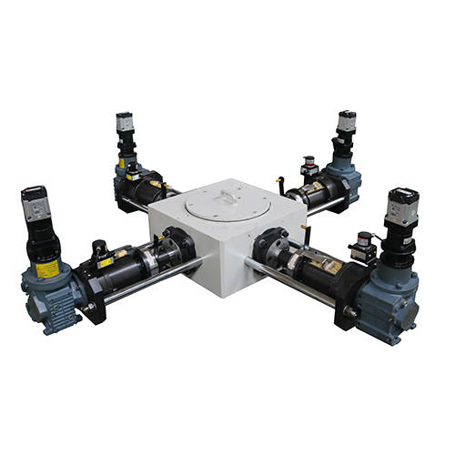 液壓控制系統是由一組獨立控制的液壓加荷裝置組成。由伺服電機減速機滾珠絲桿推動液壓筒中的移動活塞向液體水施加壓力,液體水通過管道流向真三軸壓力室內兩個σ2的液壓腔,從而使土試件在σ2作用下進行三軸試驗,可以采用應力式和應變式進行σ2加荷試驗。